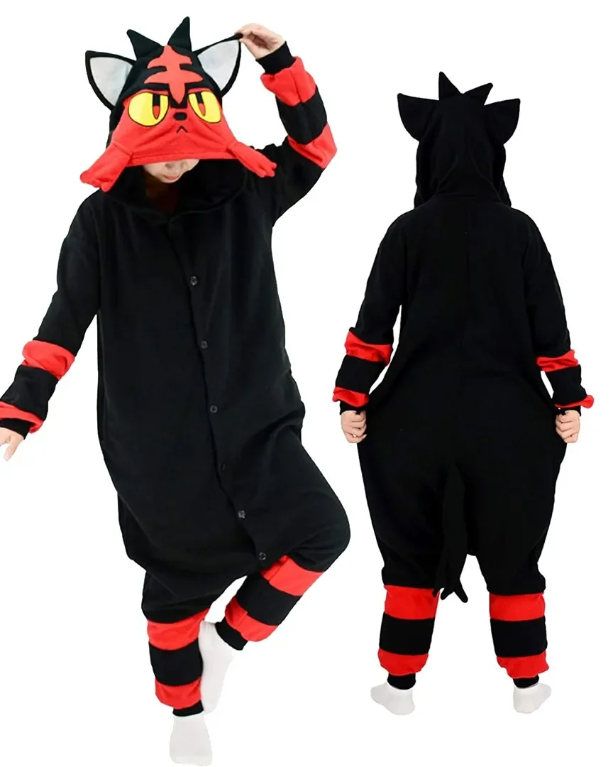 Verkleide dich mit Stil und Spaß in diesem Litten Flamiau Onesie Cosplay Kostüm für Erwachsene. Perfekt für Cosplay Events, Halloween oder einfach nur zum Entspannen zu Hause. Zeig deine Liebe für Pokemon mit diesem bequemen und auffälligen Kostüm. Auf geht's, werde zum nächsten Cosplay-Meister!